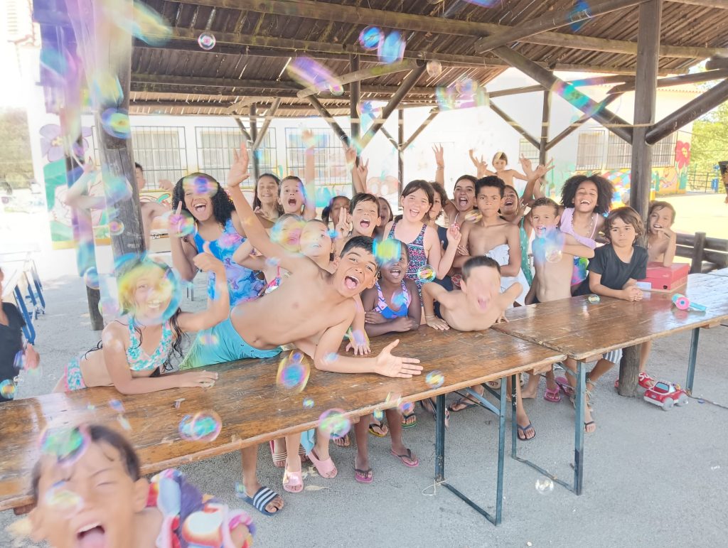 A atividade foi repleta de diversão e entusiasmo, com uma animada festa da espuma, bolas de sabão, brincadeiras molhadas, uma vibrante discoteca e muita, mas muita animação!