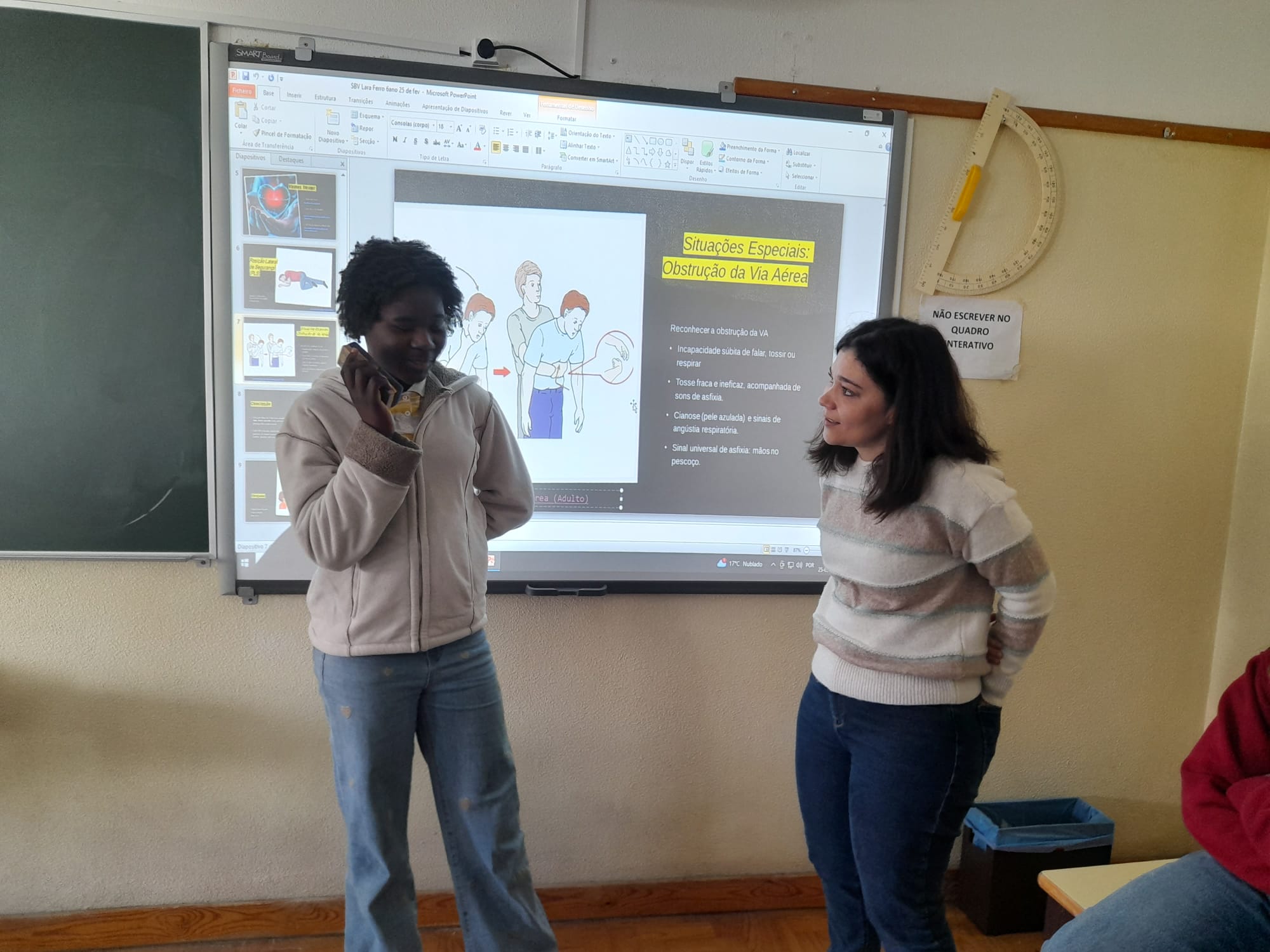 profissão, Cláudia Jacinto e Nuno Ferro — a convite da professora de Ciências Naturais.
